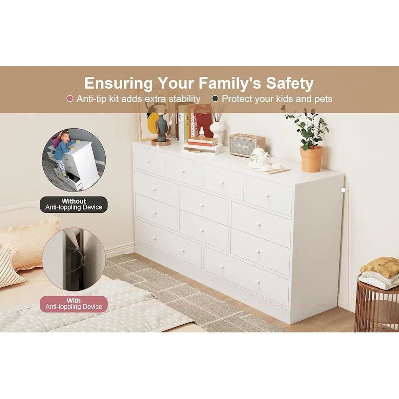 - Simple et robuste, cette commode blanche au style minimaliste et uni, dotée de 12 tiroirs compacts, s'intègre parfaitement dans toutes les pièces de votre maison : chambre, salon, couloir, entrée et même cuisine. Fabriquée en MDF de haute qualité, sa structure autoportante lui confère une stabilité optimale.