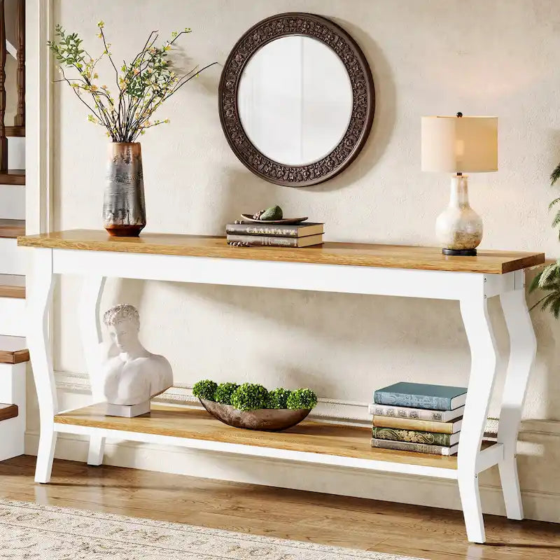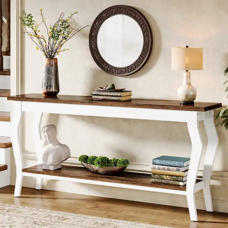 Console étroite et longue à 2 niveaux pour entrée ou salon