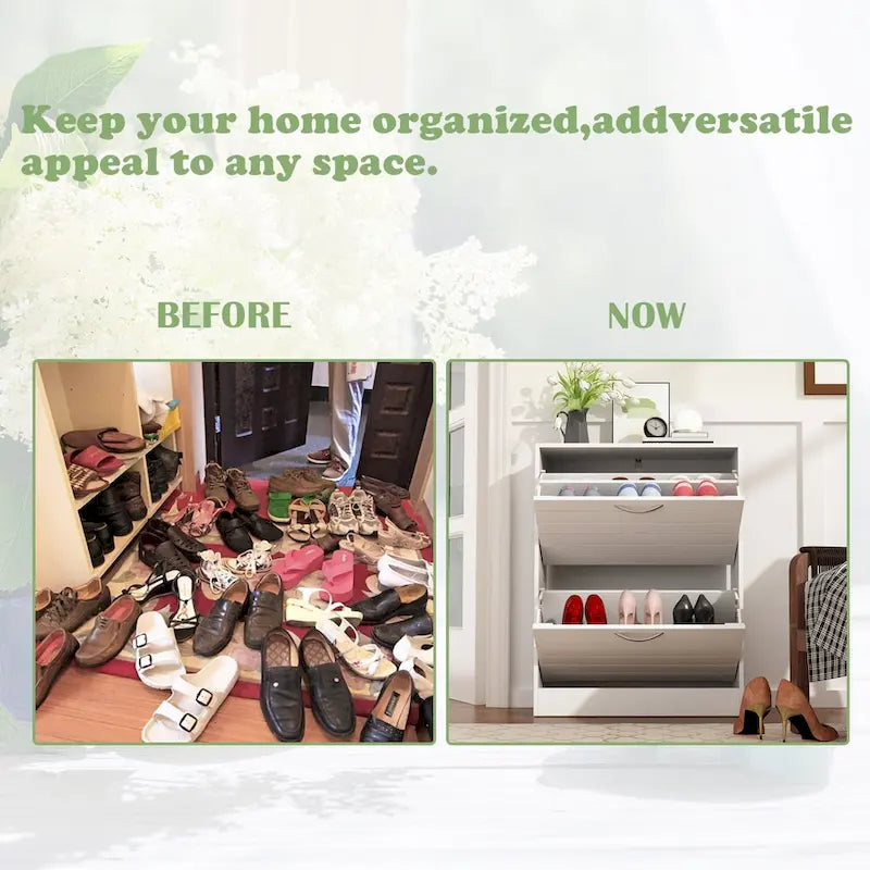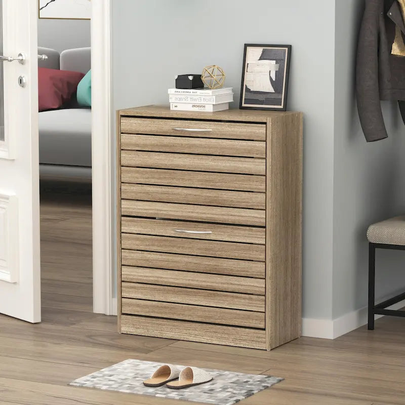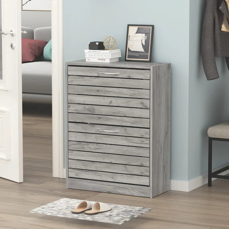 Gardez vos chaussures bien rangées et votre espace dégagé grâce à ce meuble à chaussures à deux tiroirs. Il peut contenir jusqu'à 8 à 12 paires de vos chaussures préférées, avec une rangée de chaussures dans chaque compartiment. Fabriqué en MDF imperméable, il est facile à nettoyer, et ses tiroirs basculants permettent d'accéder rapidement et facilement à vos chaussures lorsque vous êtes pressé(e).