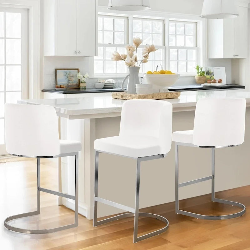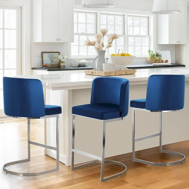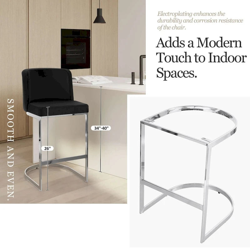 Décoration intérieure et utilisation polyvalente. Fabriqué avec une finition argentée, un revêtement en PU ou en velours et un design incurvé unique, il s'agit d'une combinaison parfaite de style moderne et classique, idéal pour un îlot de cuisine, une salle à manger, un bar à domicile, un pub, un bureau, etc.