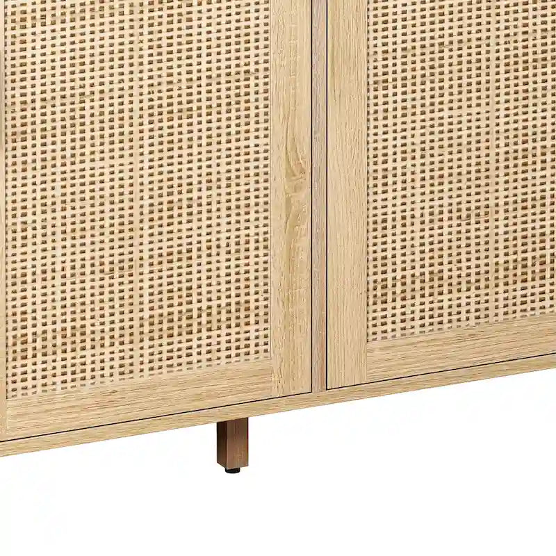 Grand espace de rangement : Ce meuble de rangement est équipé de quatre portes décoratives en rotin et d’une conception intérieure bien pensée, offrant un espace de rangement suffisant pour une vie plus ordonnée et rangée.