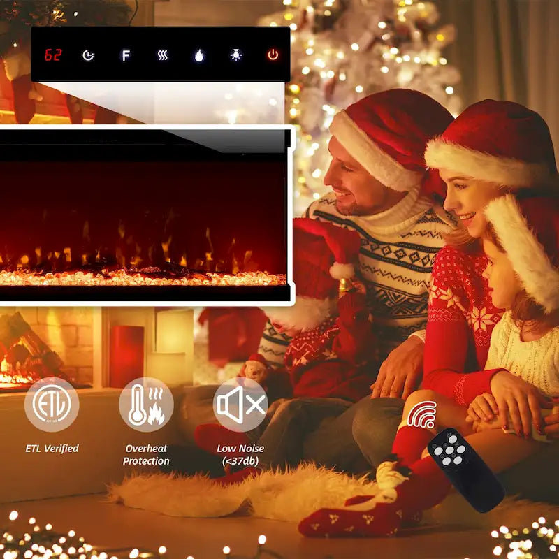 Cette cheminée électrique de 1500 W chauffe rapidement et efficacement jusqu'à 37 m² (400 pieds carrés), assurant une répartition homogène de la chaleur dans toute la pièce. Elle est équipée d'une minuterie de 1 à 8 heures et d'un système de protection contre la surchauffe pour une sécurité accrue. Certifiée ETL, cette cheminée est écoénergétique et sûre d'utilisation. La température réglable de 17 °C à 27 °C (62 °F à 82 °F) vous permet de personnaliser la chaleur, ou vous pouvez simplement admirer les flammes sans chauffage. Idéale pour un confort optimal toute l'année.