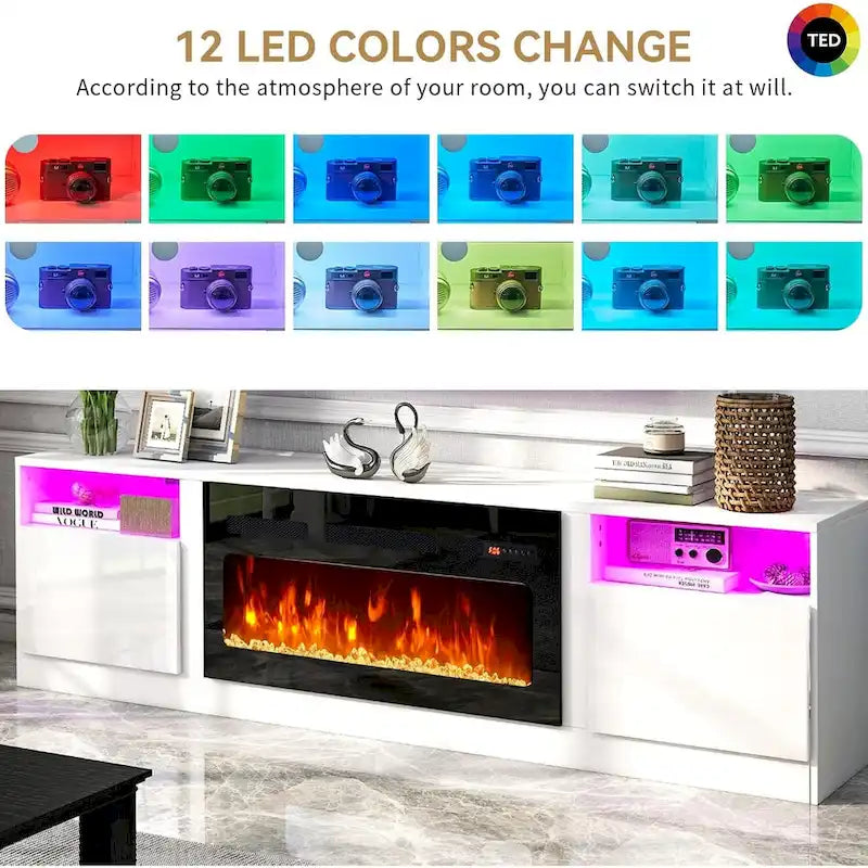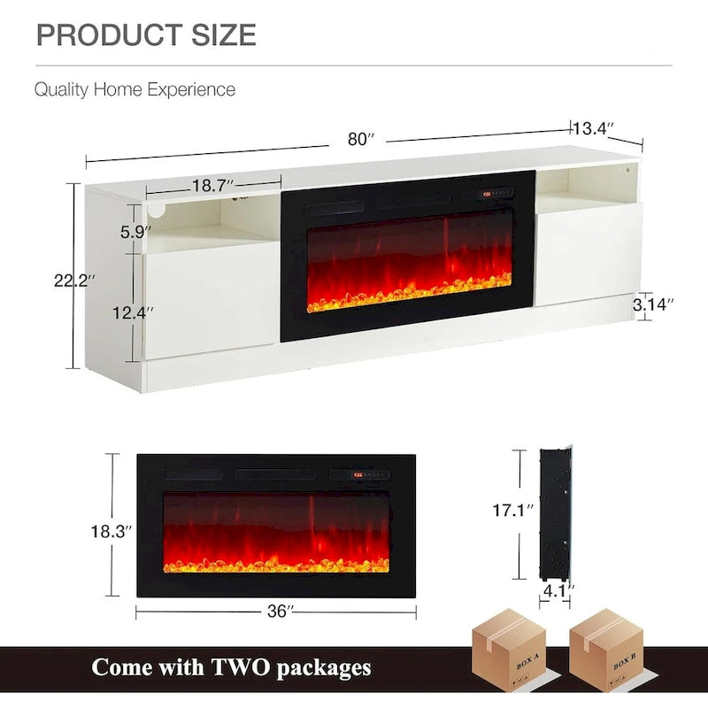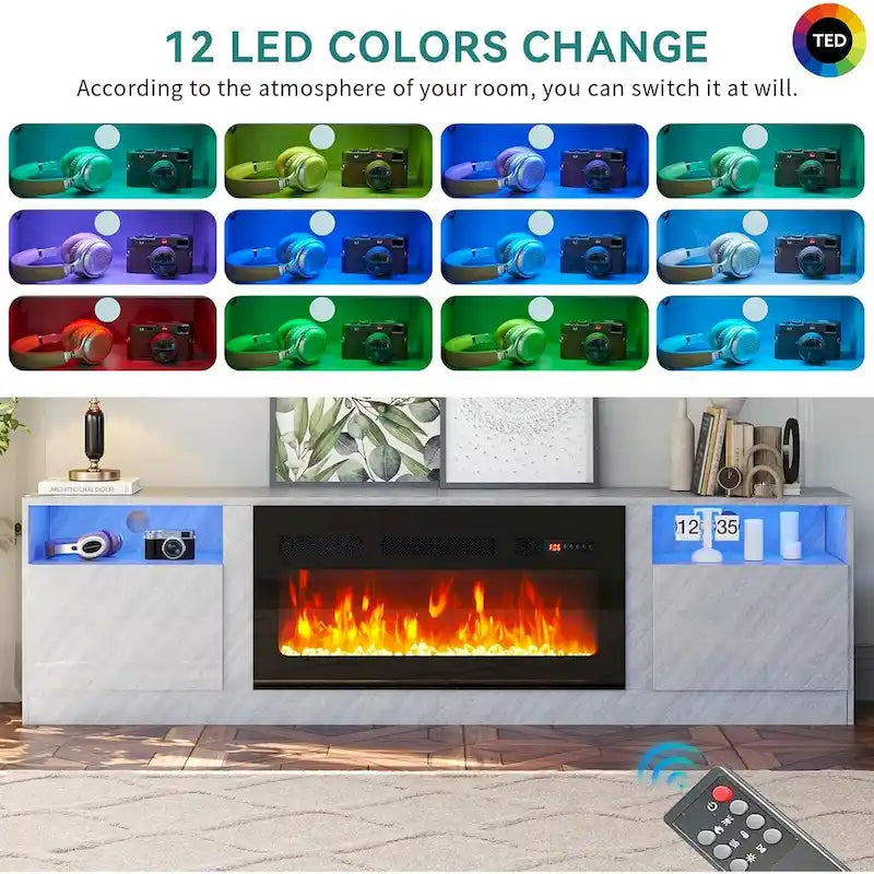 CONCEPTION 2-EN-1 ET MULTIFONCTIONNEL : Découvrez le meuble TV 79 cm (L) 13,8 cm (l) 23 cm (H) associé à une cheminée électrique de 36 cm. Idéal pour les téléviseurs jusqu’à 80 pouces, il offre une expérience visuelle stable et confortable. La large cheminée électrique moderne propose 3 couleurs de flamme réalistes et 5 niveaux d’intensité. Un kit LED ajoute 12 couleurs interchangeables pour un total de 36 combinaisons, vous permettant de personnaliser votre espace et votre ambiance.