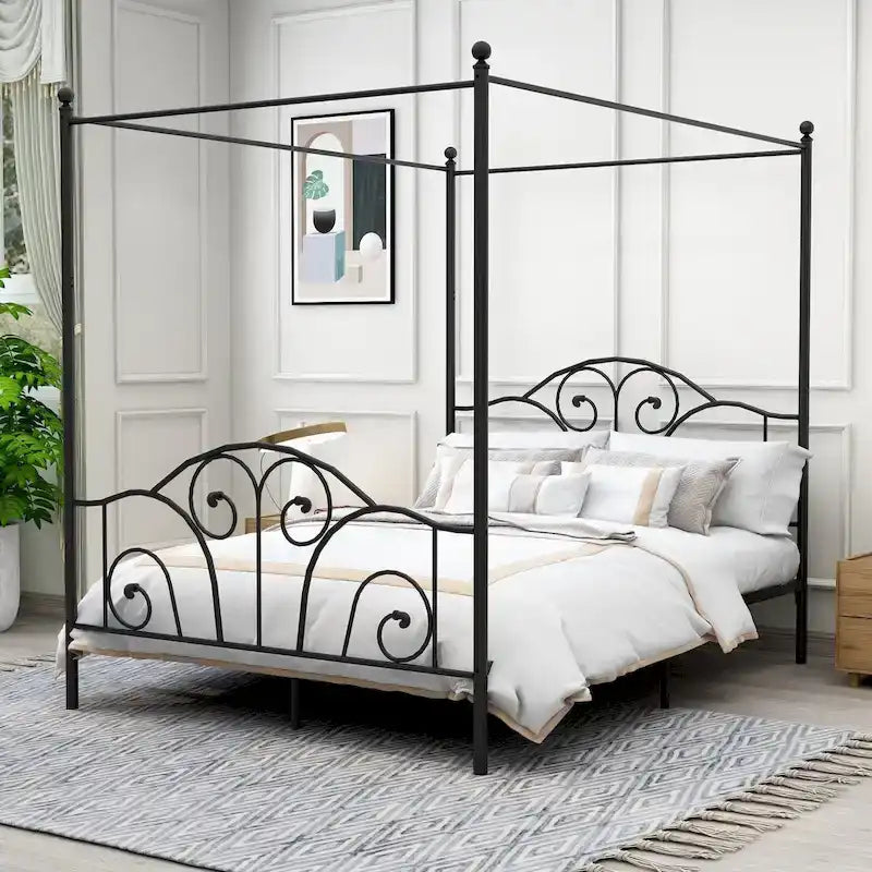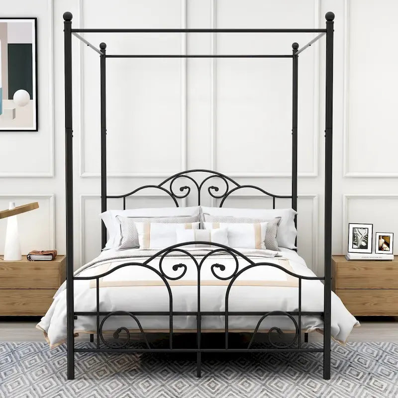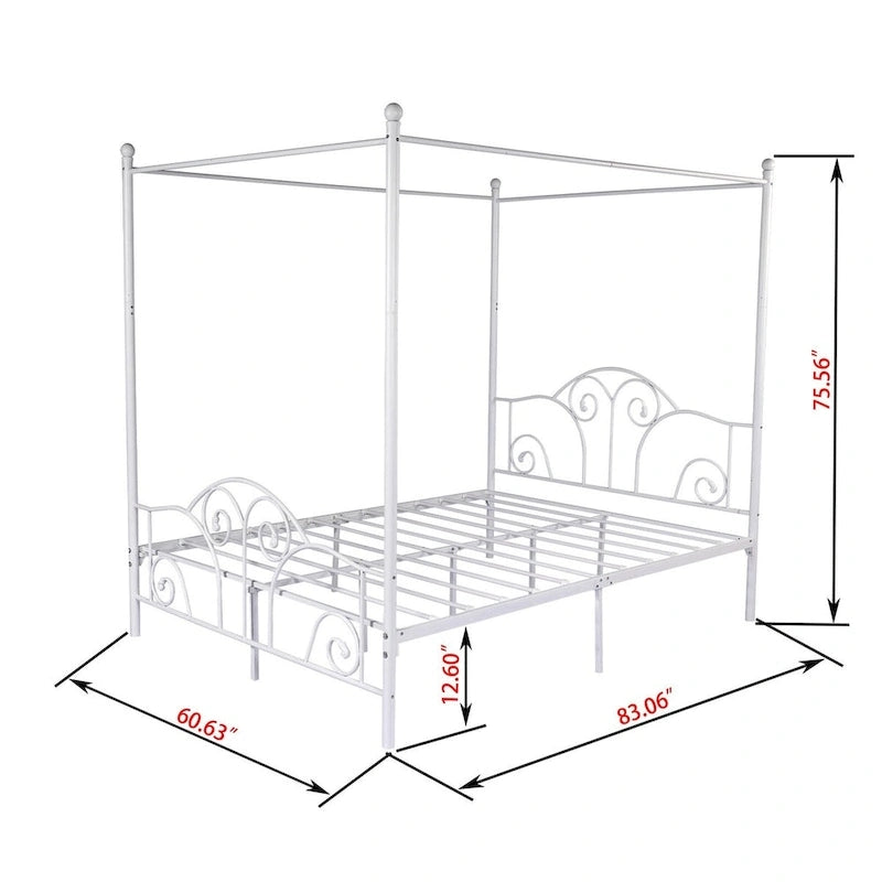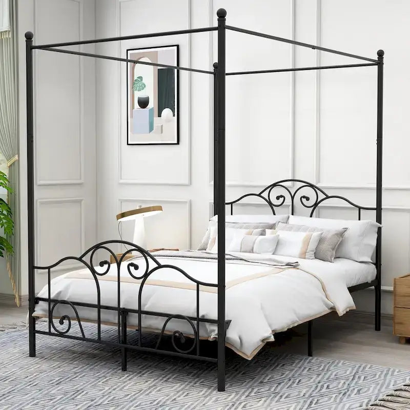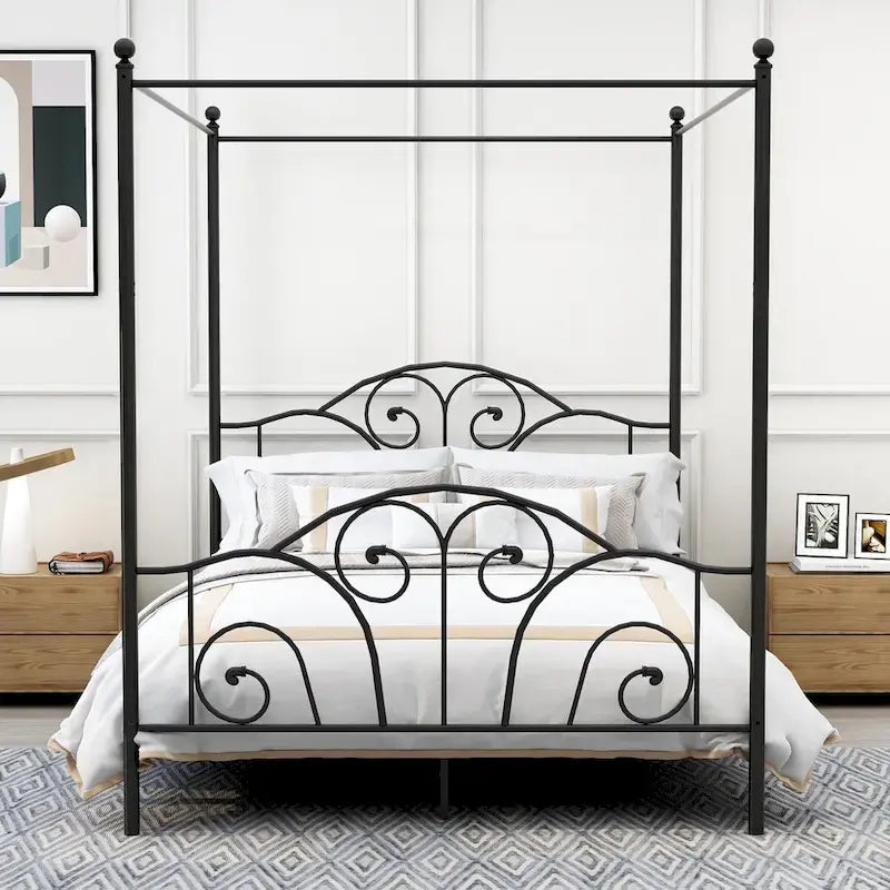 Cadre de lit à baldaquin en métal à quatre poteaux Aufank Vintage