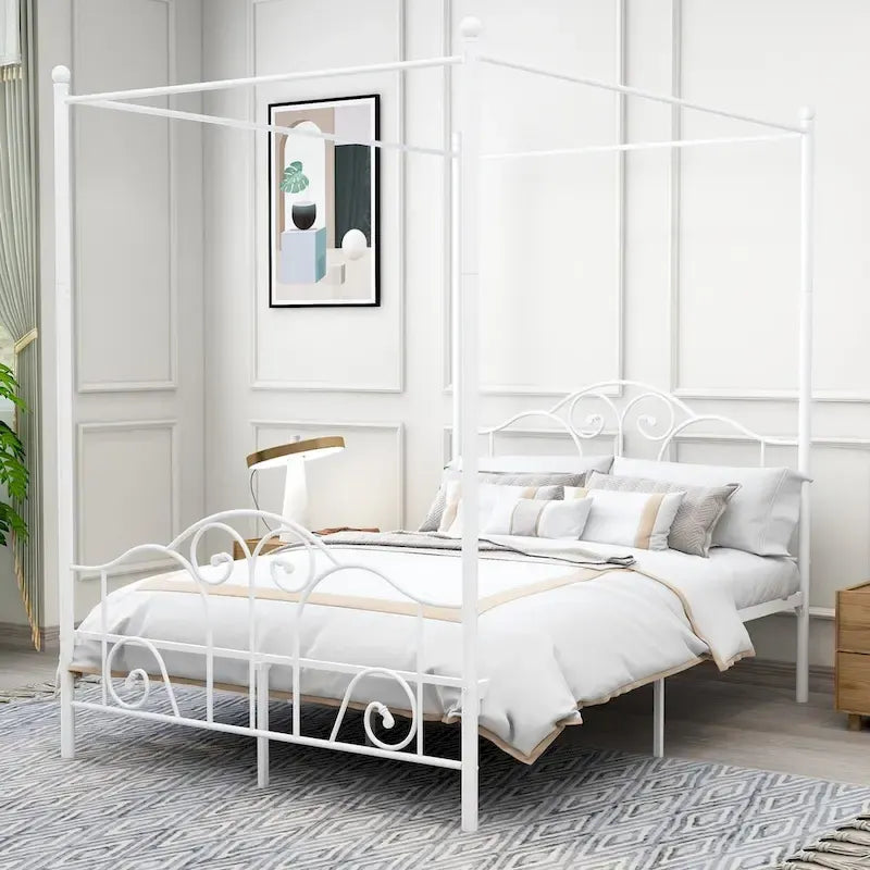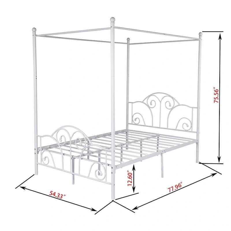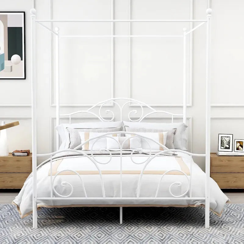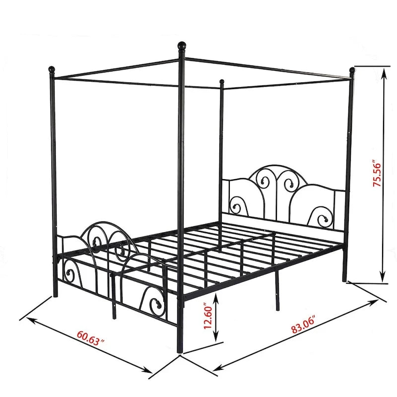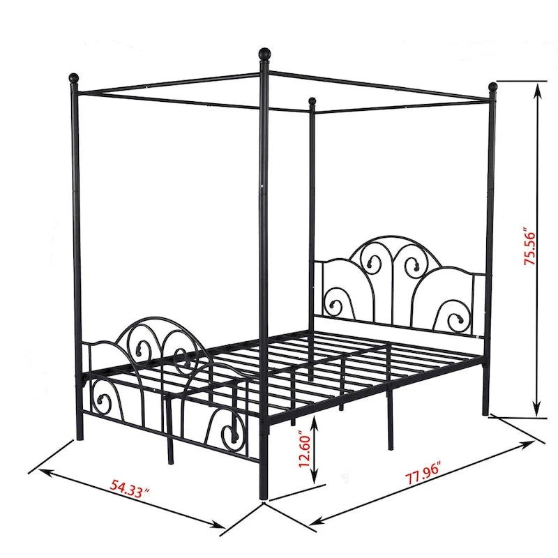 Cadre de lit à baldaquin en métal à quatre poteaux Aufank Vintage