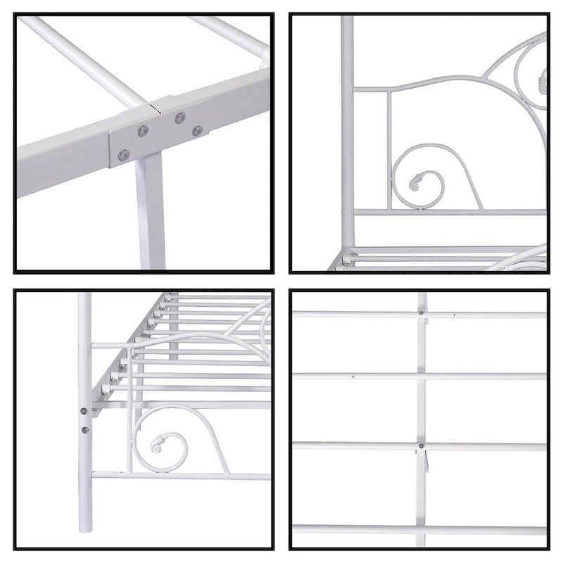 Créez un château de style européen dans votre chambre avec le lit à baldaquin Aufank Vintage à quatre poteaux en métal. Ce magnifique lit est composé de quatre poteaux en métal ouvragés soutenant une épaisse structure en acier, lui conférant un style vintage épuré, idéal pour toutes les décorations. Sa robuste structure métallique est conçue avec des longerons, des pieds centraux supplémentaires et des lattes métalliques sécurisées pour une stabilité et une durabilité optimales. Le support des lattes métalliques assure également un soutien et une aération parfaits, préservant ainsi la fraîcheur de votre matelas. De plus, aucun sommier supplémentaire n'est nécessaire ! Supportant un poids maximal de 272 kg, ce lit est conçu pour durer et vous offrir des années de confort et de sérénité.