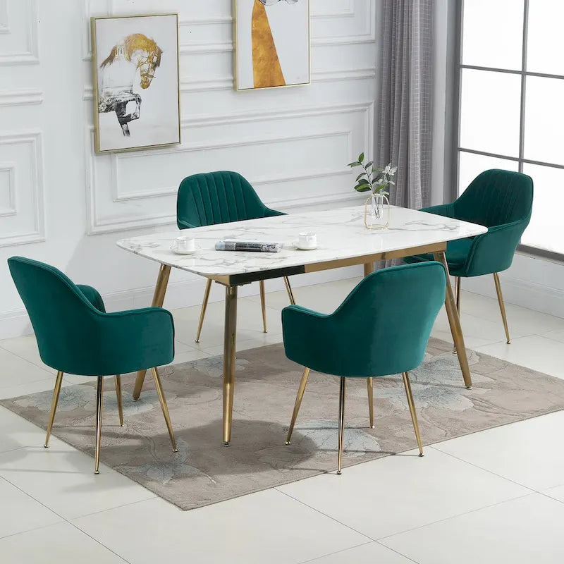 Les chaises modernes avec accoudoirs et pieds dorés sont idéales pour les familles. Leur dossier confortable et leur assise rembourrée offrent un confort optimal. Leurs pieds dorés robustes assurent une excellente stabilité et une grande résistance à la charge.