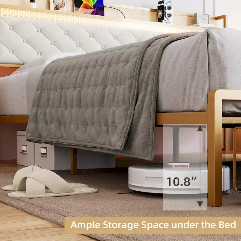 Cadre de lit lumineux LED RGB - charmant lit plateforme en métal avec lumières LED RGB de différentes couleurs, contrôlables à distance pour personnaliser votre ambiance préférée et profiter du confort et de la chaleur qu'il apporte, ajoutant un charme unique à votre chambre.