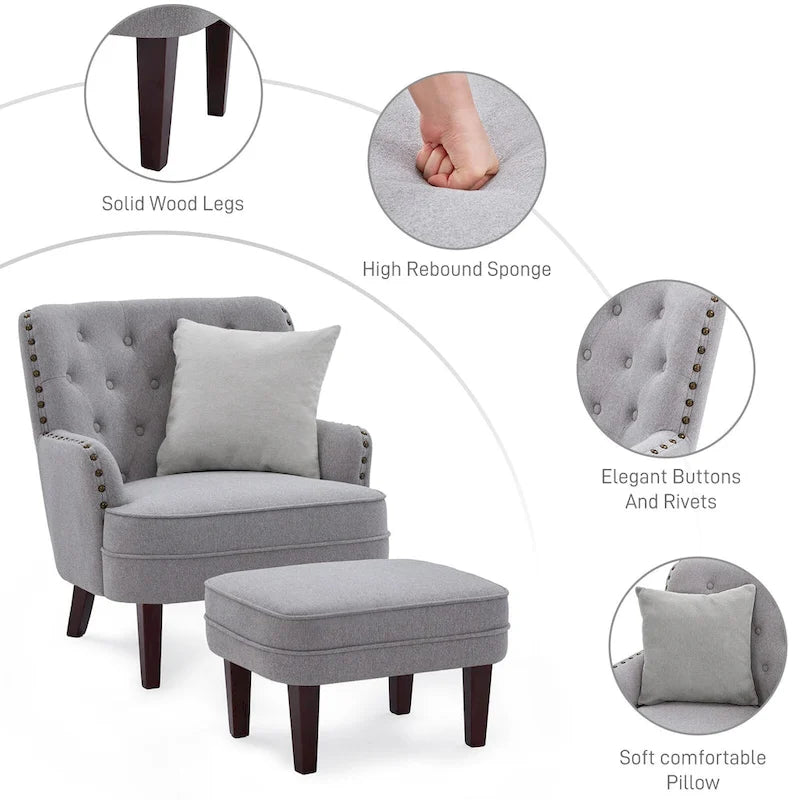 Découvrez le summum du confort et de l'élégance avec notre fauteuil moderne en lin et coton, un véritable chef-d'œuvre d'assise. Conçu à la perfection, ce fauteuil allie le charme d'une structure en bois massif au moelleux d'une mousse haute résilience, garantissant à la fois durabilité et confort inégalé. Le lin doux apporte une touche de luxe à tout espace, tandis que le capitonnage, les accoudoirs intégrés et le dossier épuré créent une silhouette élégante et accueillante. Doté d'un repose-pieds assorti et de quatre patins anti-rayures, il allie harmonieusement fonctionnalité et esthétique. Avec ses accoudoirs ergonomiques et son revêtement en tissu doux, résistant et hypoallergénique, ce fauteuil est un véritable havre de paix. Laissez-vous séduire par le design moderne dans toute sa splendeur en vous installant confortablement dans ce fauteuil capitonné, symbole d'esthétique et de confort.