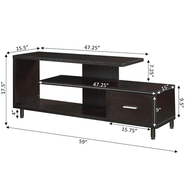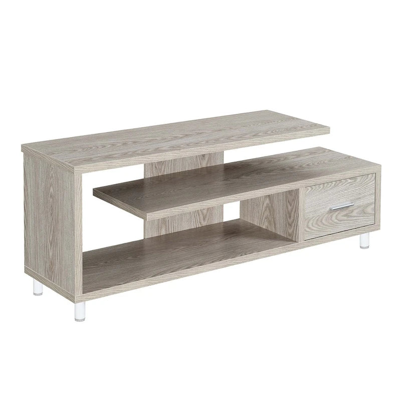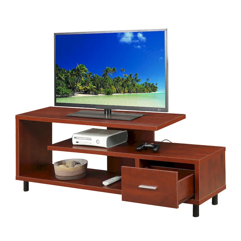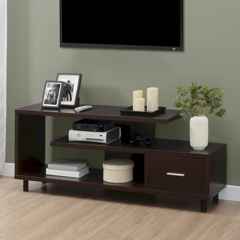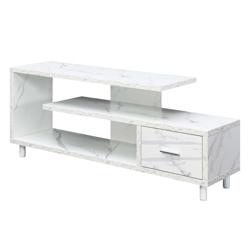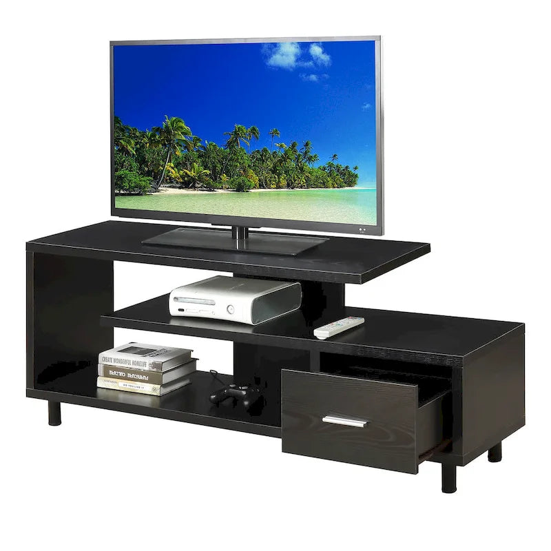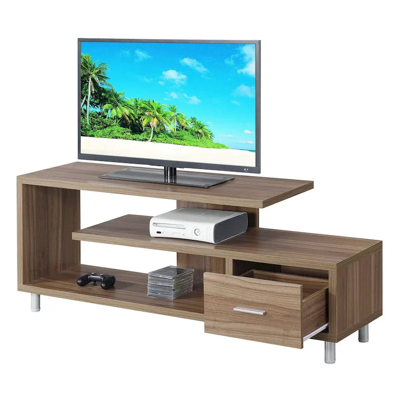 Améliorez votre espace de divertissement avec le meuble TV Seal II à 1 tiroir et étagères, compatible avec les téléviseurs jusqu'à 65 pouces, de Convenience Concepts. Conçu pour les intérieurs modernes, ce meuble TV unique arbore un design ouvert qui apporte une touche contemporaine à votre salon. Grâce à ses trois niveaux d'étagères, vous disposerez de suffisamment de place pour votre décodeur, vos consoles de jeux et même vos accessoires de décoration préférés. Alliant style et fonctionnalité, ce meuble TV comprend un tiroir de rangement spacieux doté d'une élégante poignée en acier inoxydable et de glissières à roulettes pour une ouverture et une fermeture faciles. Ce compartiment est idéal pour ranger facilement vos télécommandes, accessoires de jeux et autres. Choisissez parmi une variété de finitions pour une harmonie parfaite avec votre décoration intérieure. Offrez-vous le parfait équilibre entre design moderne et fonctionnalité avec le meuble TV Seal II à 1 tiroir et étagères, compatible avec les téléviseurs jusqu'à 65 pouces, de Convenience Concepts.