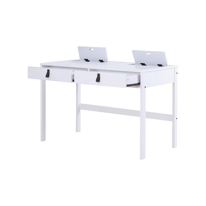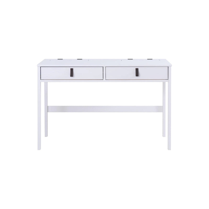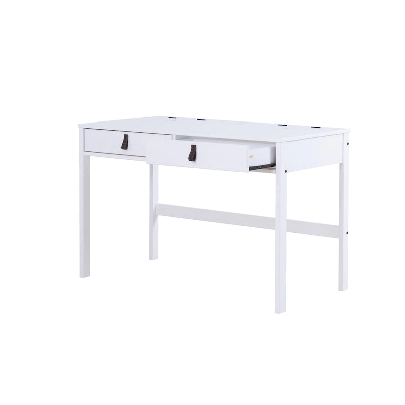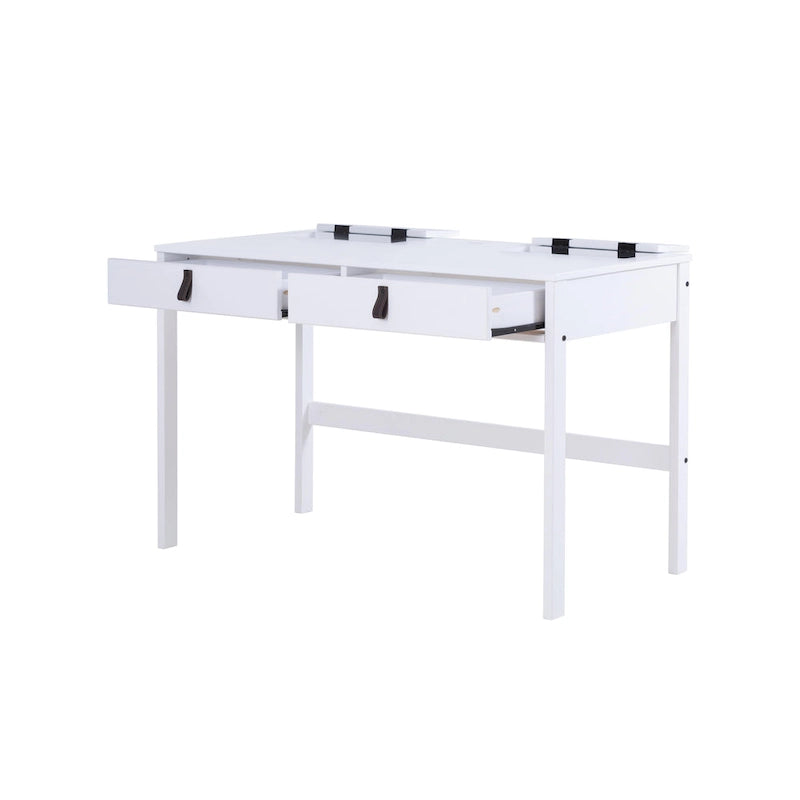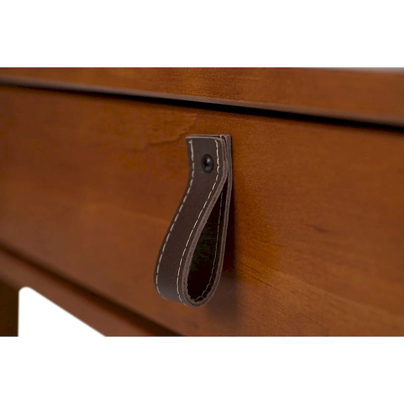 Le bureau Rivne de Copper Grove est un meuble polyvalent et élégant qui s'intègre parfaitement à tout espace de travail ou de vie. Son design moderne et épuré lui permet de servir de bureau d'ordinateur, de coiffeuse ou de buffet. Il est doté d'un grand plateau, de tiroirs spacieux avec glissières métalliques et de petits compartiments de rangement pour la papeterie ou les produits de maquillage. Sa construction robuste et son excellent rapport qualité-prix en font un investissement judicieux pour votre intérieur. Disponible en coloris Caramel et Chêne (en pin massif) ou Blanc cassé (en bois d'ingénierie certifié CARB), ce bureau est facile à monter et ses poignées en similicuir lui confèrent une touche d'élégance supplémentaire.