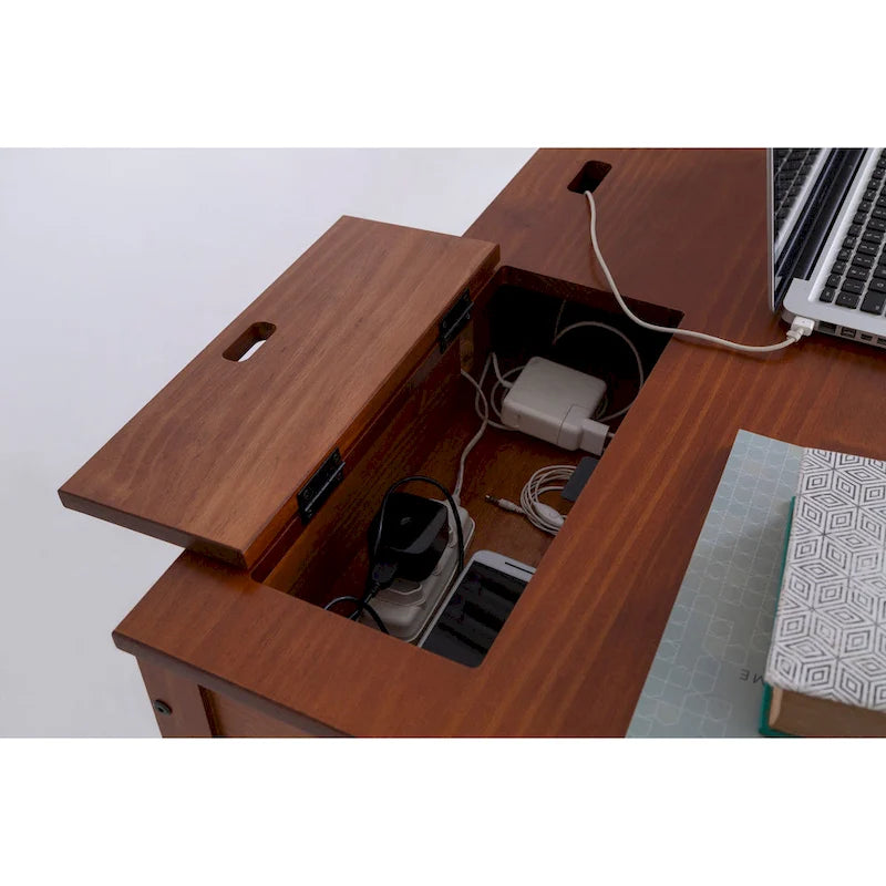 Bureau moderne et robuste en bois Copper Grove Rivne pour la maison, avec tiroirs et compartiments