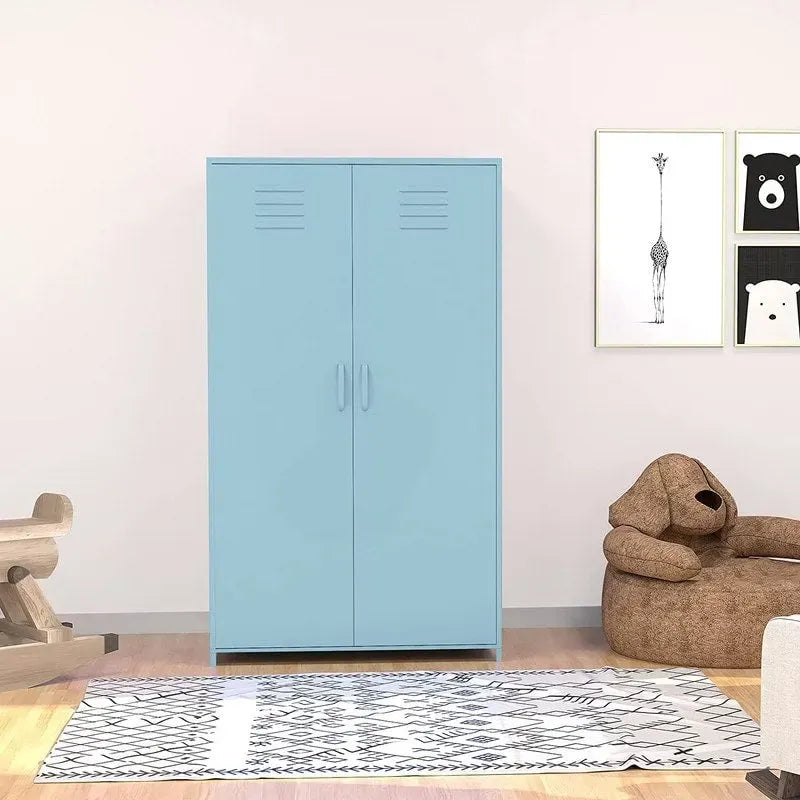 Armoire de rangement métallique à double porte avec tringle et étagères pour chambre, salle de classe ou école