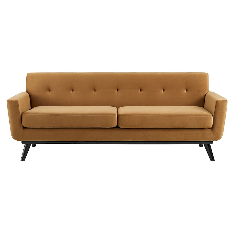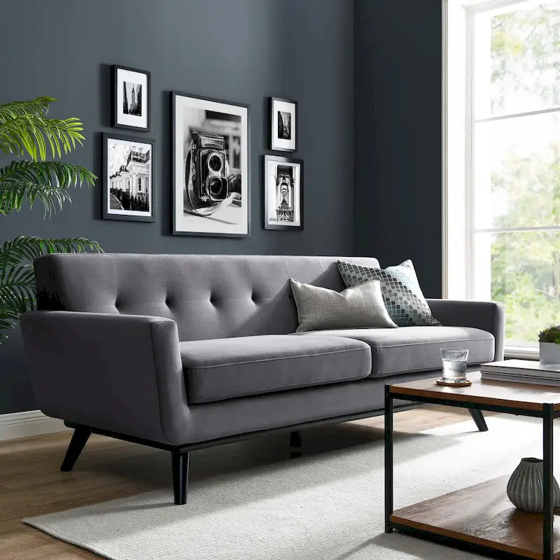 Plongez dans un univers de luxe avec le canapé Engage en velours performant. Son assise moelleuse et ses courbes douces créent un espace de détente idéal après une longue journée de travail, pour un brunch ou des conversations animées entre amis. Trois boutons capitonnés apportent une touche de sophistication et en font une pièce maîtresse élégante dans tout salon. Son revêtement en velours performant résistant aux taches et ses pieds en bois noir offrent une combinaison exceptionnelle de confort et de durabilité.