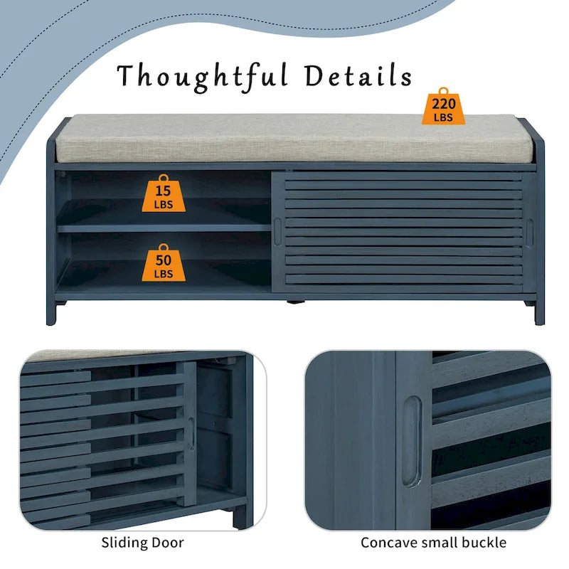 Banc d'entrée avec rangement pour chaussures, coussin et porte coulissante, meuble à chaussures pour salon, 15,4 cm (L) x 43,3 cm (P) x 16,5 cm (H)