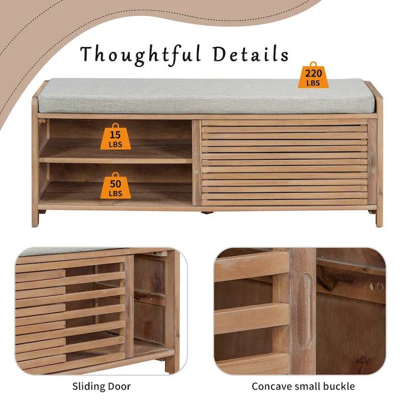 - Détails bien pensés : Ce banc d’entrée polyvalent est doté d’une surface en placage de bois, d’un coussin moelleux et amovible, et d’une porte coulissante avec une petite boucle concave pour un accès facile à un espace de rangement dissimulé. Idéal pour ranger vos essentiels tout en apportant élégance et fonctionnalité à n’importe quelle pièce.