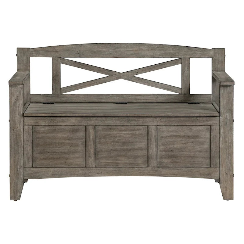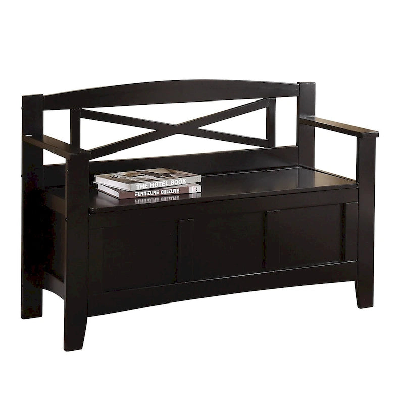 Apportez une touche champêtre à votre intérieur avec ce banc d'entrée chic et élégant signé OSP Home Furnishings. Son assise se relève pour révéler un espace de rangement spacieux, idéal pour ranger vos affaires et garder votre espace bien ordonné. Ce banc présente un dossier à croisillons, des pieds biseautés et des bords carrés, le tout dans une élégante finition noire. Son montage est simple et rapide, vous permettant de profiter sans attendre de son esthétique fonctionnelle.