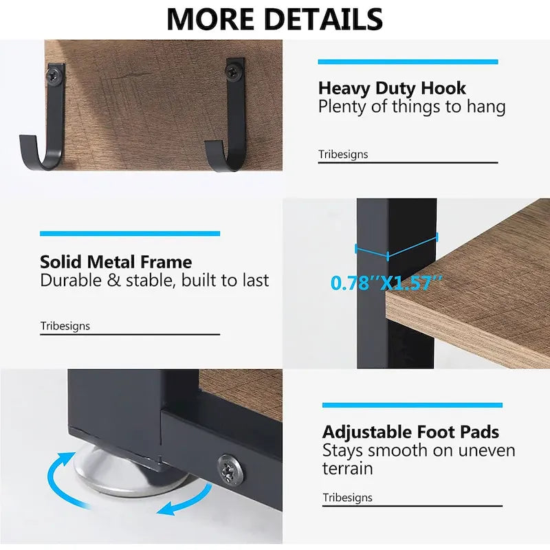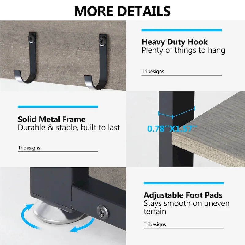 - Beaucoup d'espace de rangement pour les manteaux, sacs, chapeaux, laisses pour chiens, clés, chaussures, photos, petites plantes, livres et portefeuilles.