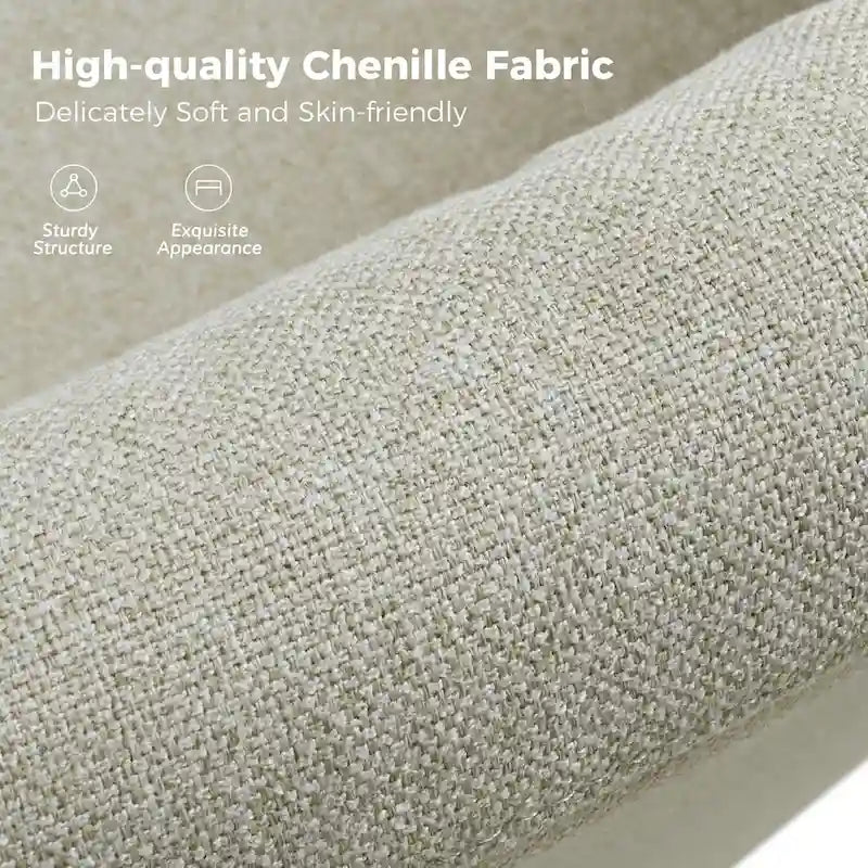 - Tissu texturé et accoudoirs évasés : le revêtement des fauteuils est confectionné dans un tissu doux au toucher qui imite l’aspect et le toucher du lin. Les accoudoirs évasés offrent un confort et un soutien accrus, créant ainsi un espace de détente privilégié.