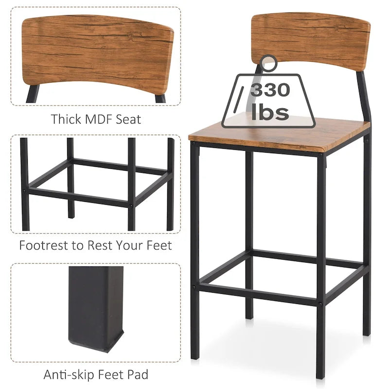 Ensemble de salle à manger moderne HOMCOM 5 pièces, table de cuisine compacte haute et 4 chaises avec repose-pieds, pieds en métal, bois.