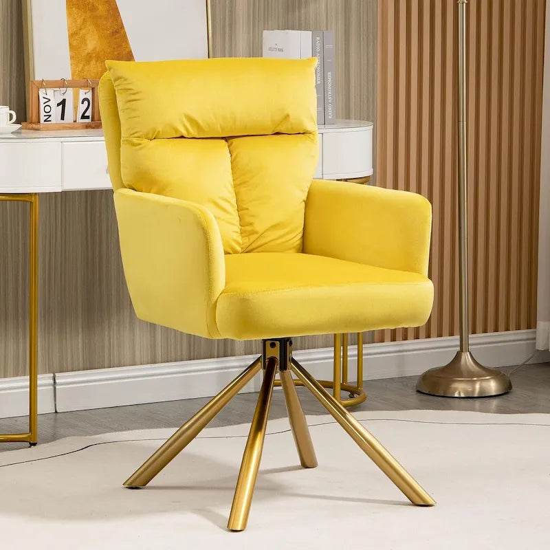 - Design attrayant : revêtement en tissu doux pour la peau, assise, dossier et accoudoirs rembourrés, pieds en métal doré. Ce fauteuil pivotant vous offre un confort optimal. Il trouvera assurément sa place dans votre intérieur.