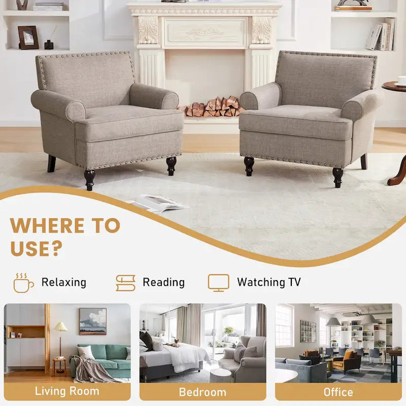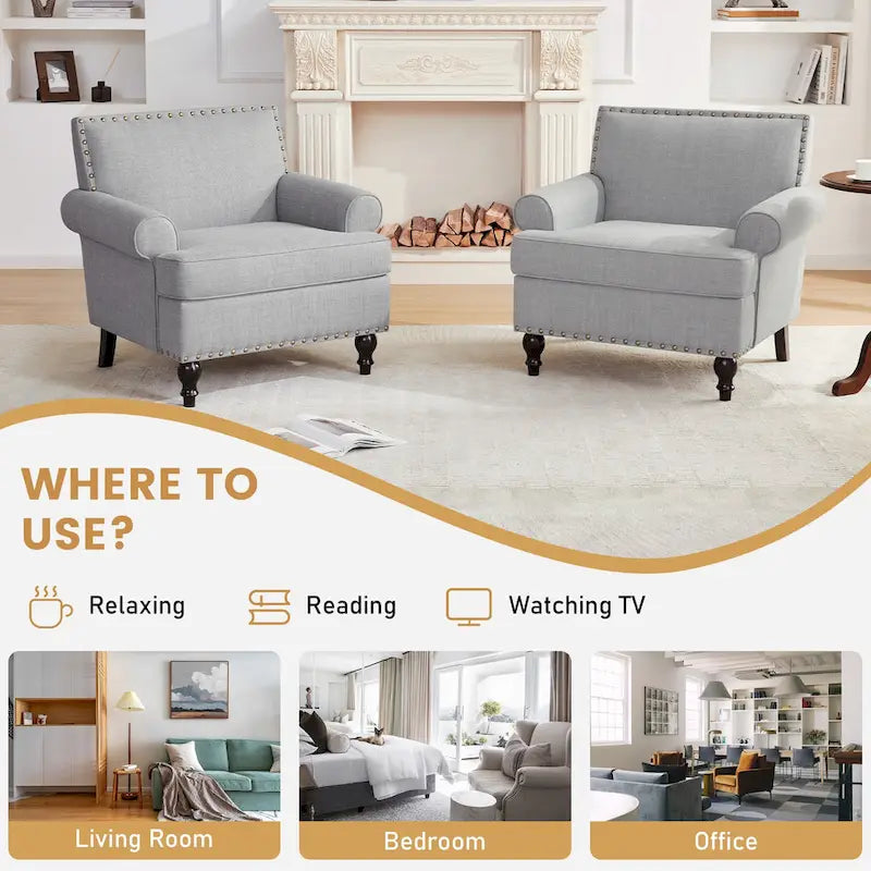 Ensemble de 2 fauteuils d'appoint Huimo modernes à clous décoratifs