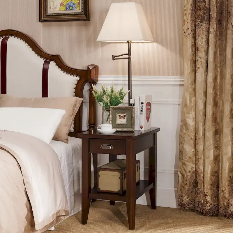 La table d'appoint Laurent mesure 25,4 cm de large x 61 cm de profondeur x 61 cm de haut, ce qui la rend idéale pour les petits espaces. Grâce à sa lampe intégrée, plus besoin d'en acheter une séparément ! Fabriquée en bois massif, elle arbore une finition cerisier chocolat, une poignée de tiroir en étain et un abat-jour beige clair. Son tiroir est pré-assemblé et des instructions détaillées sont fournies : vous profiterez ainsi de votre nouvelle table plus rapidement qu'avec d'autres meubles en kit. Parfaite comme table d'appoint avec sa lampe intégrée, son design polyvalent s'harmonise avec différents styles de mobilier, que ce soit dans un salon, une chambre ou un bureau. La satisfaction de nos clients est notre priorité depuis plus de 150 ans, et notre garantie limitée d'un an vous assure un achat sans risque.