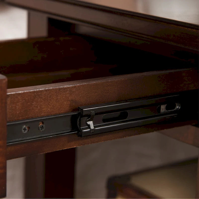 Avec ses finitions soignées et sa construction robuste, la table d'appoint Laurent 10537 de Leick Home offre un encombrement réduit, idéal pour s'intégrer à tous les espaces. Ses éléments en bois massif aux dimensions généreuses sont adoucis par des bords perlés et des reflets brillants. Les tiroirs, montés sur glissières à billes à extension complète, offrent un espace de rangement profond et solide. Le plateau en bois dur massif est poli pour une douce brillance, dans une riche teinte Cerisier Chocolat. Facile à monter grâce à son tiroir pré-assemblé. Conçue et fabriquée par Leick Home, la référence en matière de mobilier de qualité pour tous les goûts et tous les budgets.