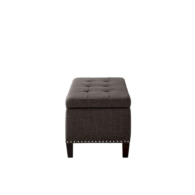 Optimisez l'espace de votre salon ou de votre bureau en un clin d'œil grâce à ce banc de rangement Madison Park. Son revêtement en lin gris uni, orné de capitons et de clous décoratifs, s'harmonise avec les pieds noirs pour créer un meuble élégant et neutre qui s'intègre facilement à votre intérieur contemporain.