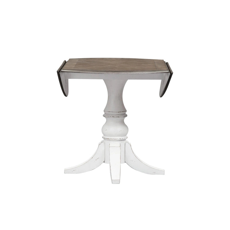 L'ensemble Magnolia Manor, composé de quatre chaises à dossier échelle et d'une table à abattants, apporte une touche d'élégance à votre intérieur. Fabriqué en peuplier massif et placage de bouleau et chêne blanc, cet ensemble arbore une finition blanc antique et un plateau brun vieilli blanchi à la chaux. La table est dotée de deux abattants de chaque côté, permettant d'agrandir l'espace ou de le gagner, et repose sur un pied central tourné aux pieds évasés. Les chaises, quant à elles, incarnent à la perfection le design européen : patins en nylon pour protéger vos sols, dossier arqué et assise en bois, le tout reposant sur de magnifiques pieds tournés. Leurs finitions antiques chaleureuses, leur patine artistique et leurs dimensions généreuses en font un meuble d'exception, conçu pour être transmis de génération en génération.