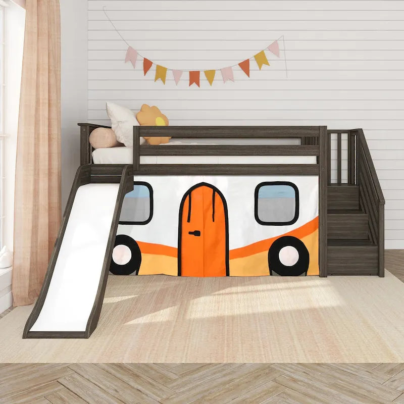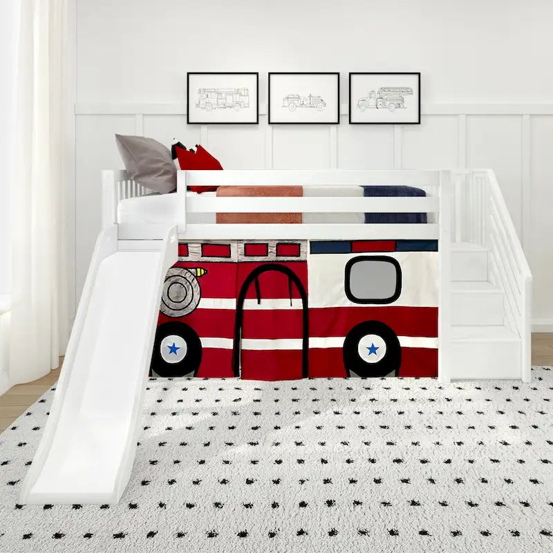 Découvrez l'alliance parfaite entre fonctionnalité et plaisir avec le lit mezzanine bas Max & Lily, doté d'un toboggan facile d'accès, d'un escalier et d'un rideau de style champêtre. Conçu pour créer un espace ludique et optimiser l'espace, ce lit mezzanine offre un refuge stimulant à vos enfants. Fabriqué avec soin à partir de bois massif sans nœuds, ce lit mezzanine avec toboggan garantit une durabilité et une stabilité exceptionnelles. L'utilisation de finitions non toxiques à faible teneur en COV contribue non seulement à son attrait, mais assure également un environnement de sommeil sain pour votre enfant. Supportant jusqu'à 180 kg, ce lit garantit un soutien optimal pour des nuits paisibles. Les robustes lattes en contreplaqué, renforcées par une barre de support métallique et des fixations boulonnées métal sur métal, assurent une stabilité et une sécurité durables. Son esthétique moderne se manifeste par les têtes de lit à lattes, la quincaillerie assortie et les finitions soignées, apportant une touche de charme contemporain à la chambre de votre enfant. Ce lit mezzanine promet des heures de jeu et de divertissement, notamment grâce à son rideau champêtre ludique qui crée une cachette idéale sous le lit. Son montage est un jeu d'enfant grâce aux outils et instructions fournis. Personnalisez l'aménagement de votre chambre grâce aux différentes options d'emplacement pour l'escalier et le toboggan, pour une adaptation parfaite à votre espace. Dormez et jouez avec style grâce au lit mezzanine bas Max & Lily, équipé d'un toboggan facile à monter, d'un escalier et d'un rideau champêtre, conçu pour respecter, voire dépasser, les normes de sécurité fédérales pour le mobilier enfant. Ce lit mezzanine polyvalent avec toboggan offre à votre enfant un monde de possibilités, alliant qualité, sécurité et divertissement sans fin.