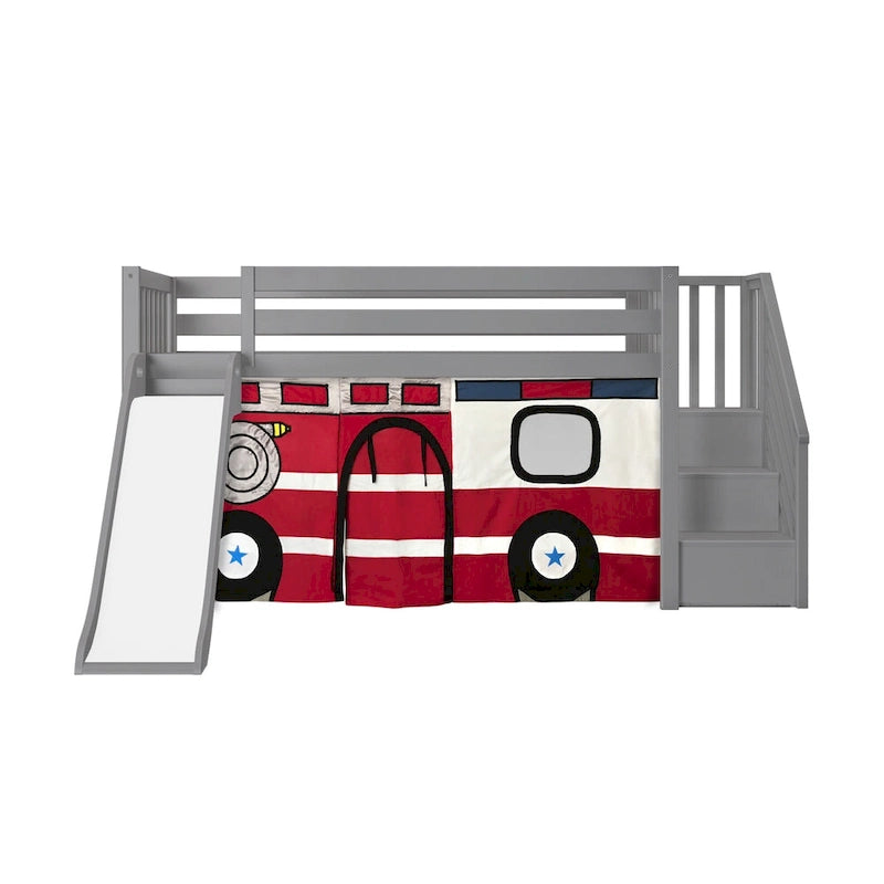 Lit mezzanine double classique Max and Lily avec escalier, toboggan facile et rideau