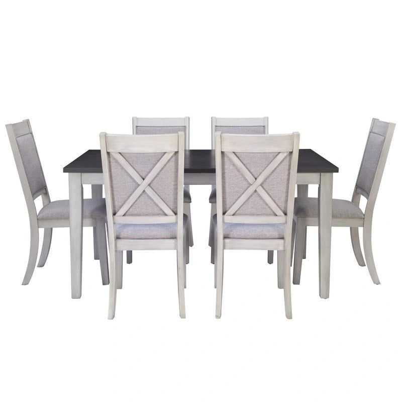 Des grandes occasions aux repas du quotidien, cet ensemble de salle à manger est idéal pour créer des souvenirs inoubliables en famille ou entre amis. Les chaises et la table sont soutenues par une structure en bois massif finition brossée blanche, offrant un aspect vintage vieilli qui contraste avec le placage en acacia gris foncé du plateau de table. Le revêtement en lin beige moucheté habille les six assises et dossiers pour un confort optimal et un entretien facile. Parfait dans un intérieur moderne ou traditionnel, cet ensemble transitionnel transformera à coup sûr votre expérience culinaire à un prix exceptionnel.
