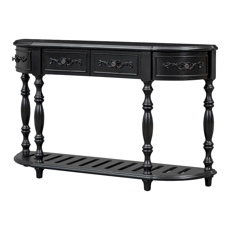 - [Grand espace de rangement] Cette console de style classique dispose de quatre tiroirs et d'une étagère offrant un espace de rangement considérable pour ranger paniers à déchets, plantes en pot, livres, etc. Le plateau supérieur peut accueillir un joli vase, de jolies photos et décorations, des bibelots supplémentaires ou une lampe.