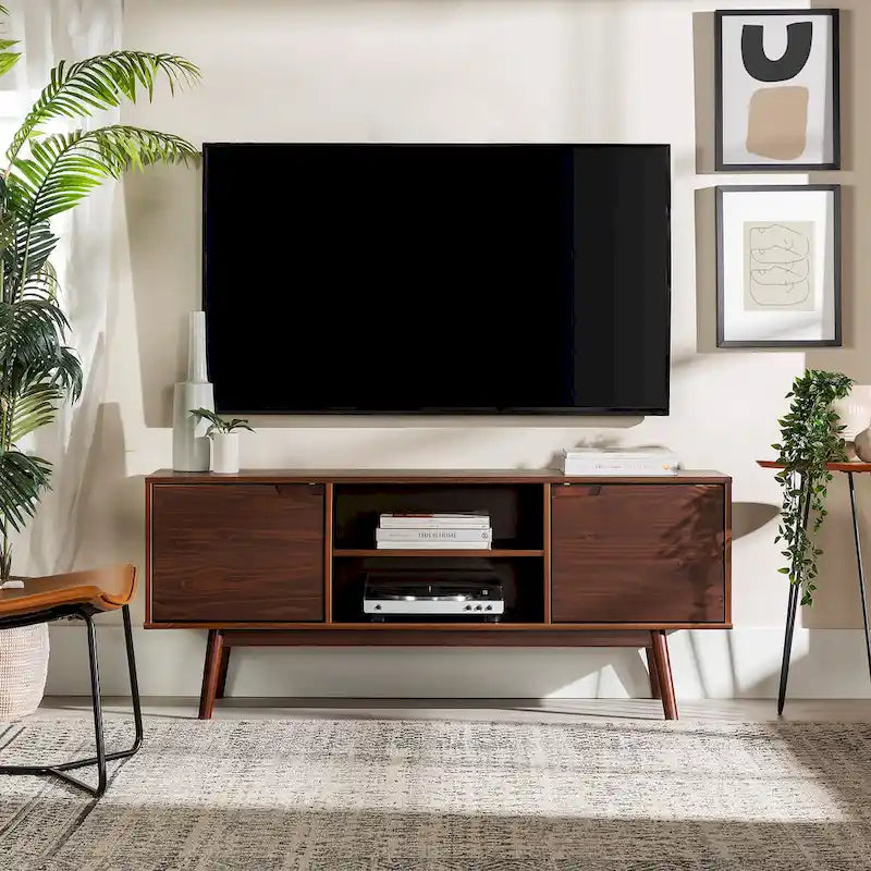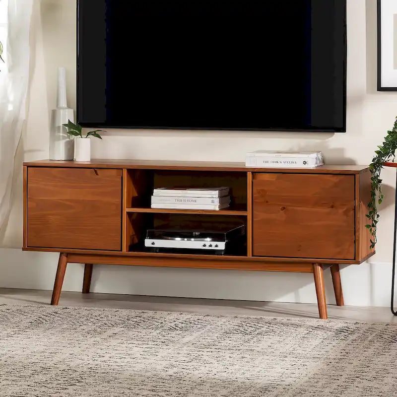 Meuble TV Middlebrook de 58 pouces en bois massif, style milieu du siècle