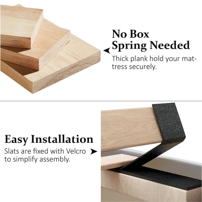 - Des lattes en bois massif et un système de support en métal assurent la durabilité, éliminant ainsi le besoin d'un sommier.