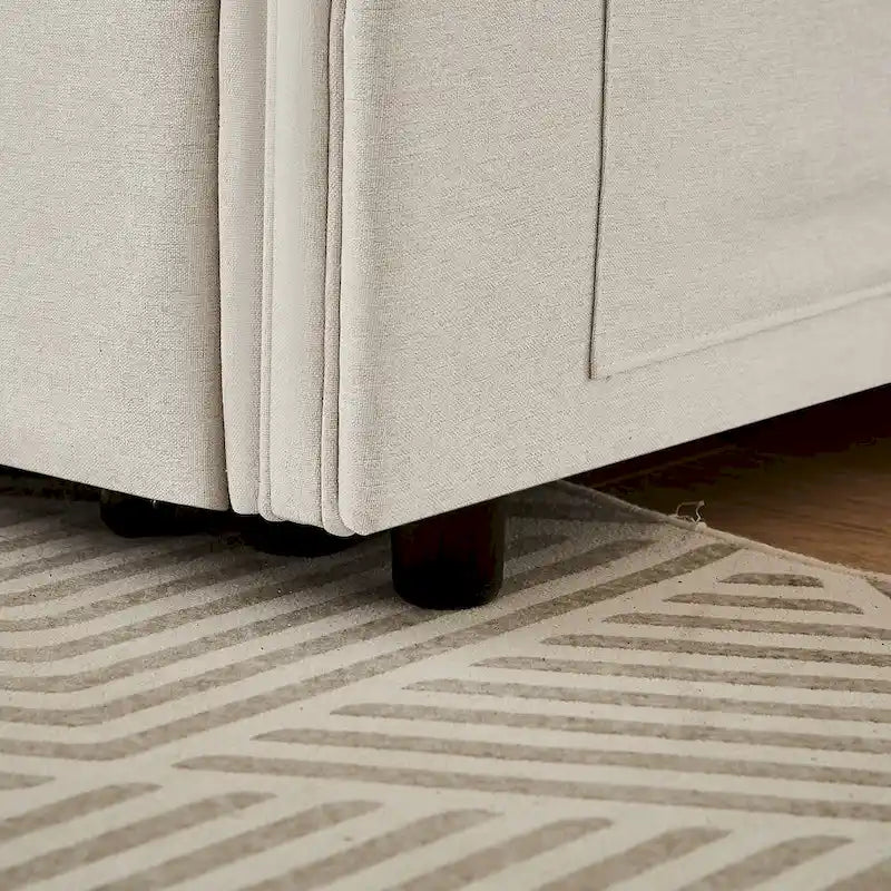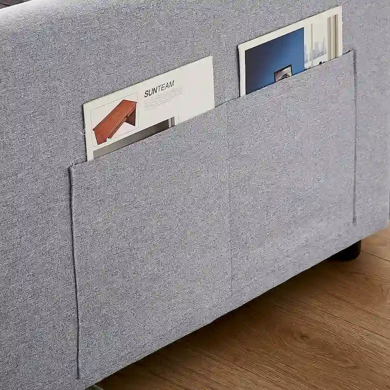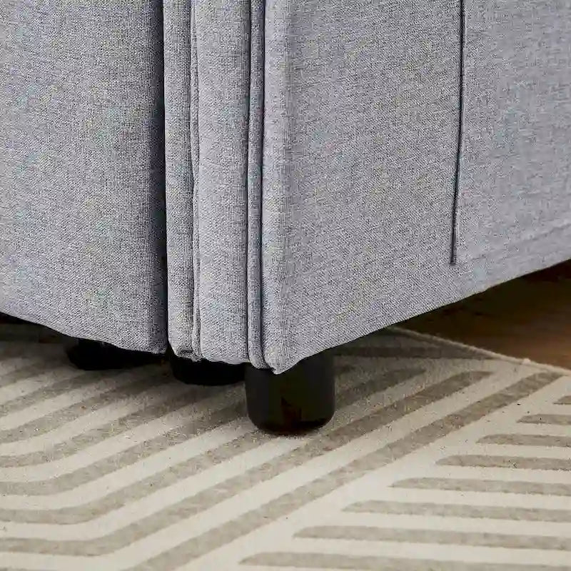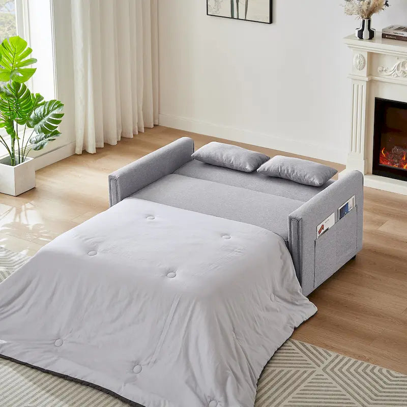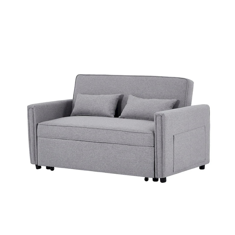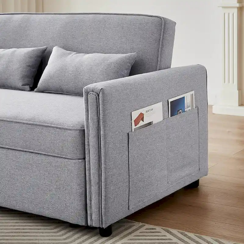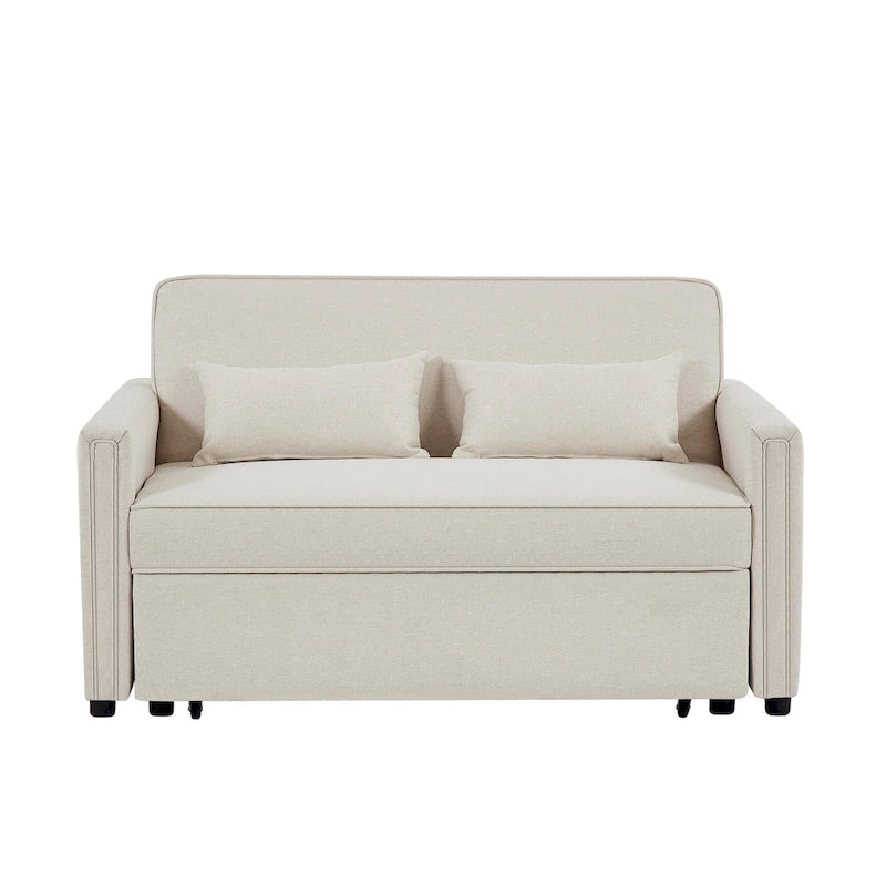Canapé-lit convertible deux places en lin moderne avec dossier réglable, lit gigogne et 2 coussins lombaires
