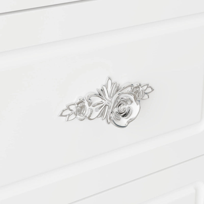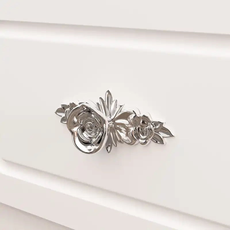 Poignées : Agrémentées de poignées en métal argenté et or rose, ajoutant une touche de sophistication.