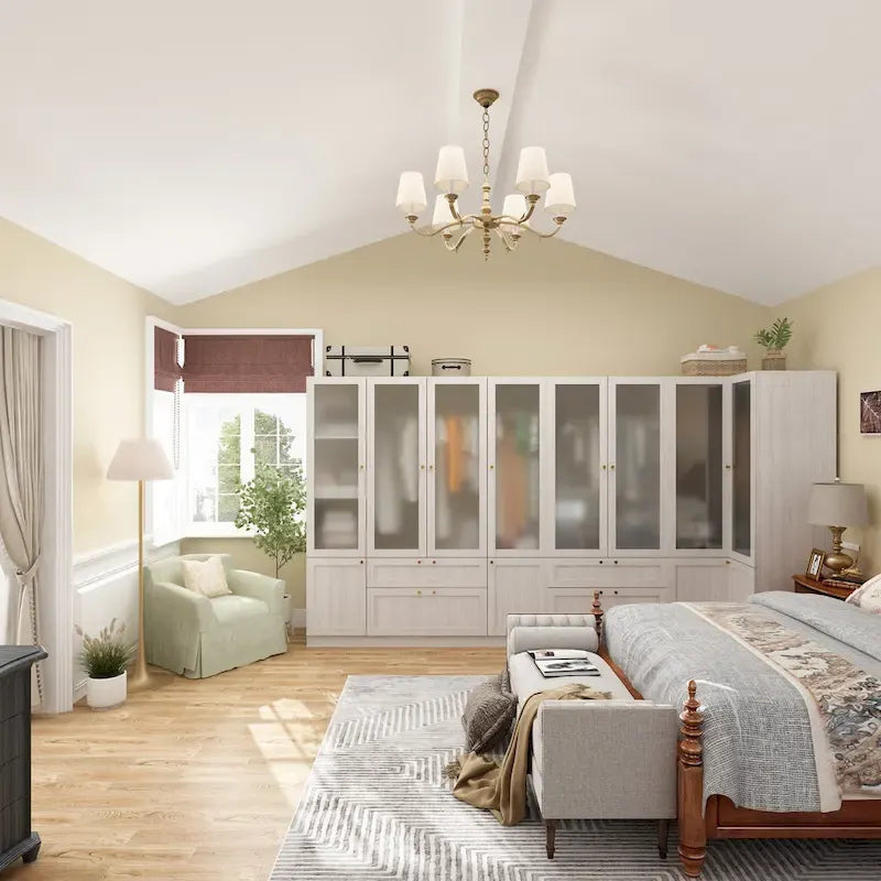7. Personnalisable : Grâce aux armoires hautes, latérales et d’angle disponibles, vous pouvez créer le dressing de vos rêves. Les configurations flexibles en L et en U offrent une multitude de possibilités.