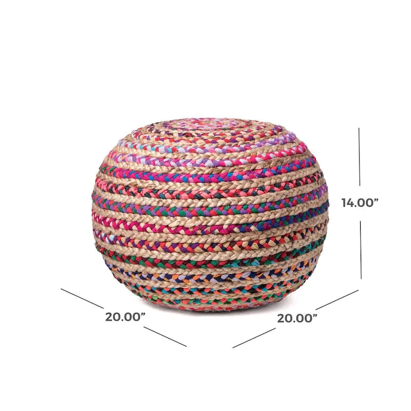 Pouf ottoman rond rembourré en tricot Nuloom Ling