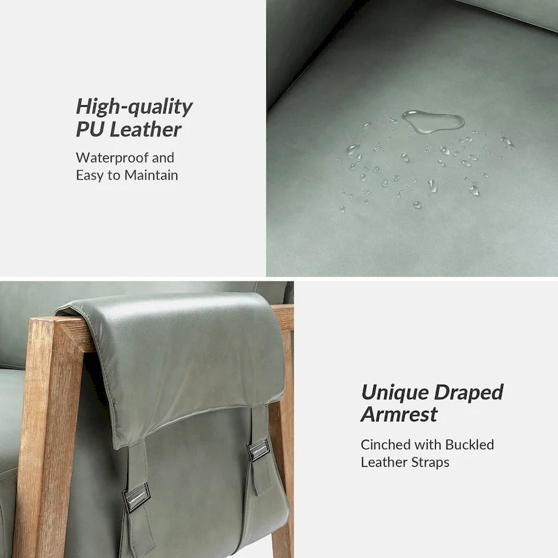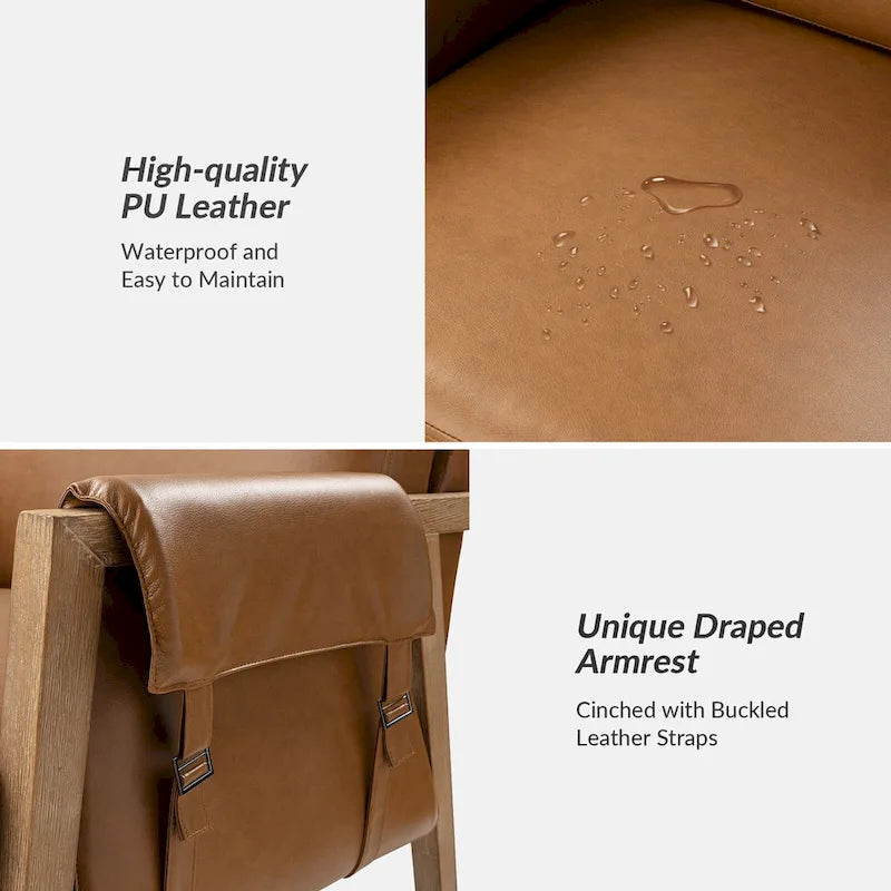 Fauteuil d'appoint Olivia Farmhouse en similicuir avec pieds en bois massif par HULALAHOME