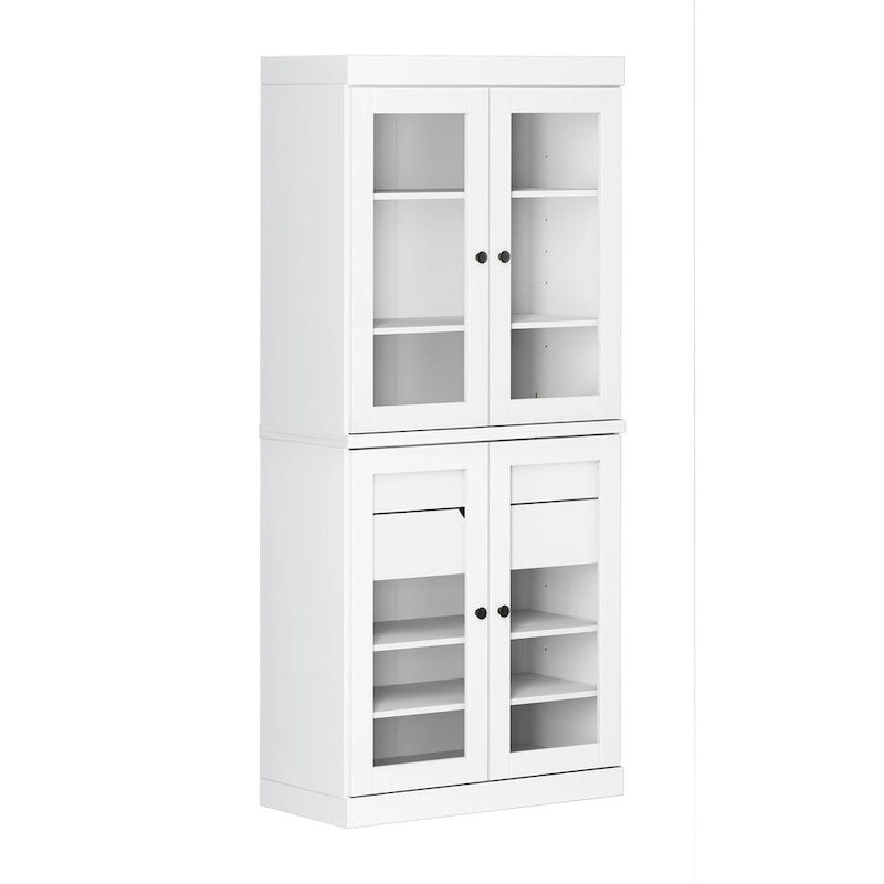 Armoire de rangement Palace Imports 100 % bois massif avec portes dépolies, en verre transparent ou pleines, 2 tiroirs et étagères réglables