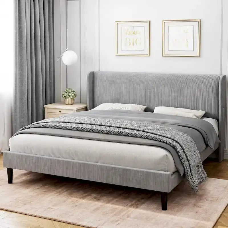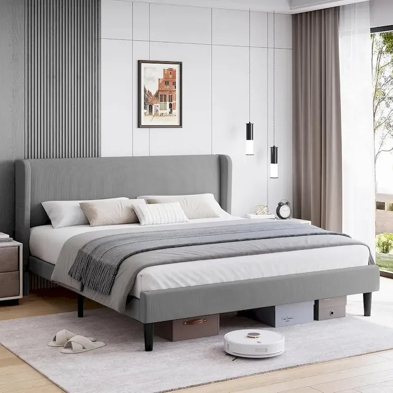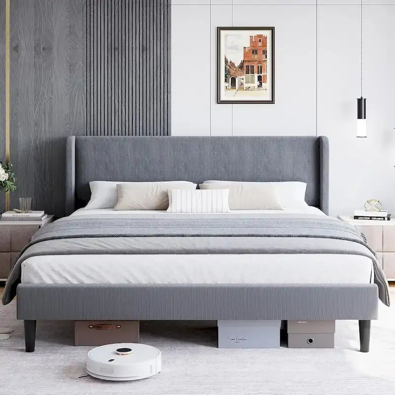 Cadre de lit plateforme avec tête de lit capitonnée à oreilles
