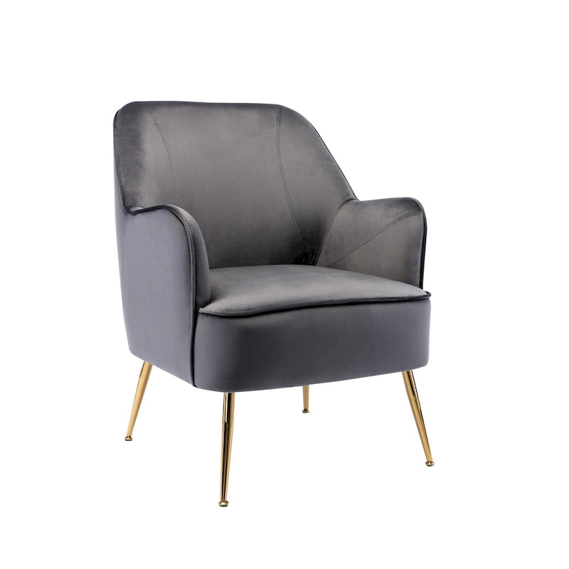 Fauteuil d'appoint rembourré en velours Adora de Porthos Home avec pieds chromés dorés