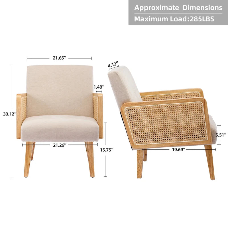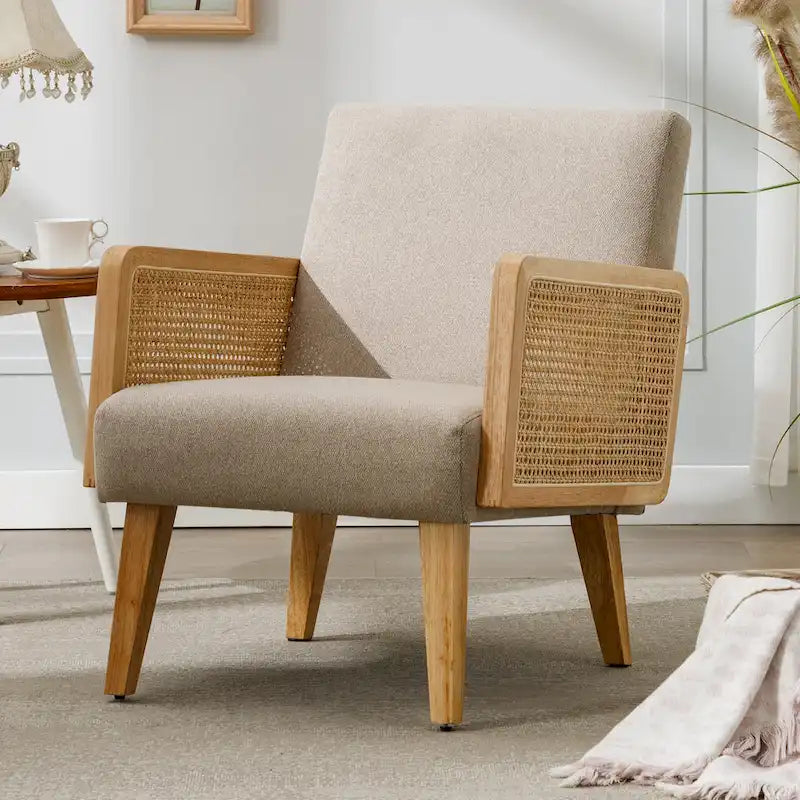 Fauteuil d'appoint en rotin avec accoudoirs et revêtement en tissu