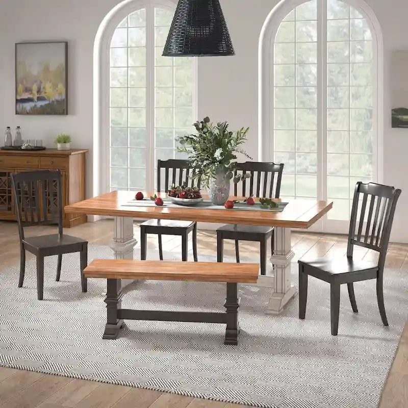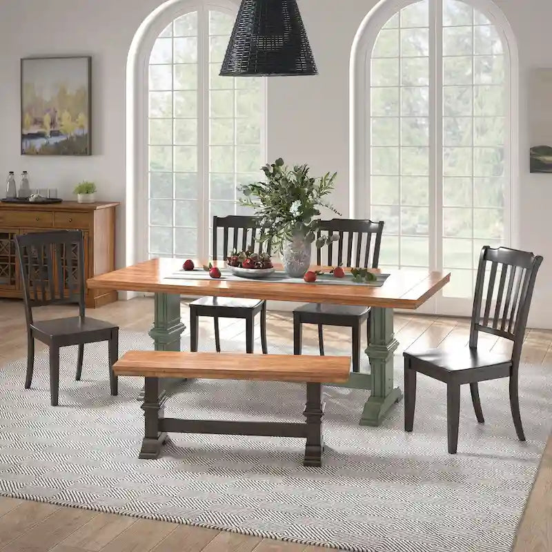 Cet ensemble de salle à manger rectangulaire de 78 pouces (198 cm) avec plateau en bois massif et chaises à dossier à barreaux est le classique intemporel que vous recherchiez. Arborant un design traditionnel, cet ensemble comprend une table ronde et des chaises. Chaque chaise est dotée d'un dossier à barreaux ergonomique pour un confort optimal et un excellent maintien pendant vos repas. La table est fabriquée en bois d'hévéa massif et présente une finition bois classique, idéale pour les amateurs d'une esthétique champêtre moderne.