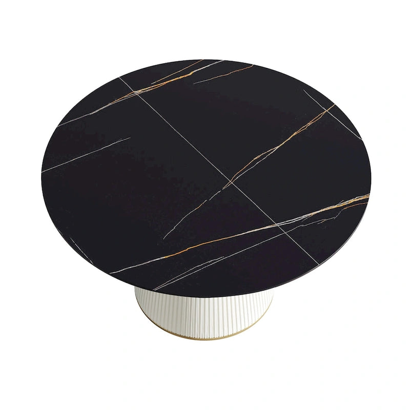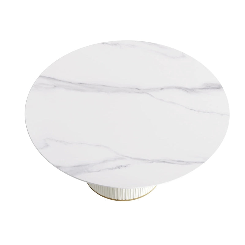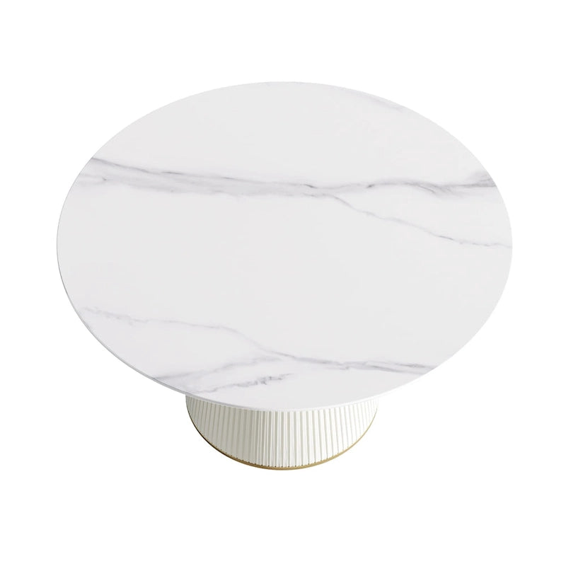 Table de salle à manger ronde sur pied en PU, imitation marbre