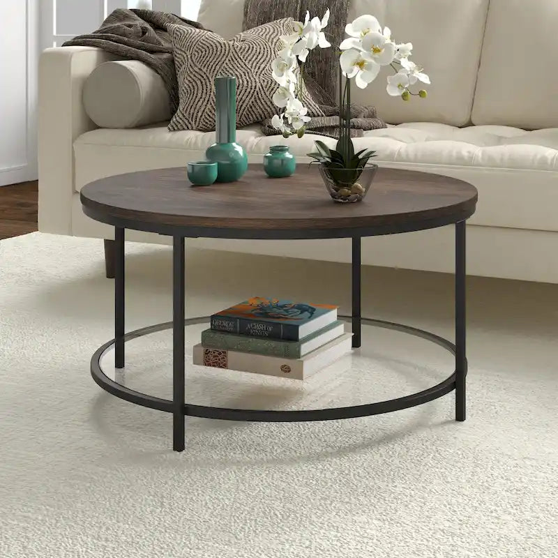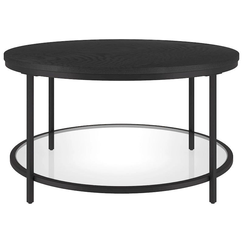 Table basse ronde Sevilla de 81 cm de large avec plateau en MDF et étagère en verre - 81 cm de large