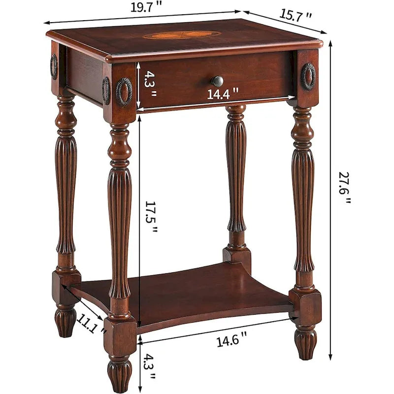 Table basse console en bois massif avec tiroir de rangement