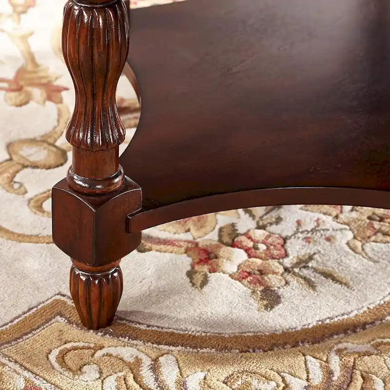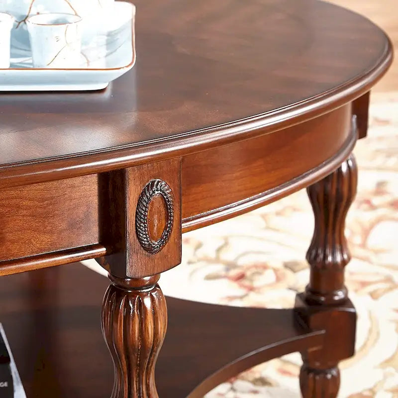 Cette table basse vintage se transforme en une charmante œuvre d'art qui apportera une touche d'élégance à votre salon. Fabriquée en bois d'hévéa et en contreplaqué de bouleau, cette table basse ovale sculpturale présente d'élégantes sculptures sur les côtés. Dotée de six pieds robustes, elle est solide et peut supporter jusqu'à 113 kg sans problème de stabilité. Son plateau spacieux de 116 cm de diamètre offre un espace généreux pour vos objets du quotidien, tandis que l'étagère inférieure et le tiroir de rangement offrent un espace de rangement supplémentaire. Le montage est un jeu d'enfant grâce aux éléments pré-assemblés et à la notice de montage claire et concise. Commandez en toute confiance : cette table basse ovale en bois massif est garantie un an par le fabricant.
